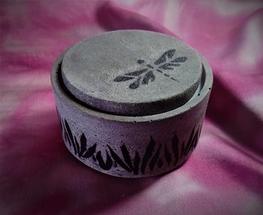 Remains are cast directly into the concrete then sealed after curing. You can mail the ashes to the studio or bring them in yourself. If you would like to be part of the casting process this can be arranged by appointment with the studio . All remains are handled with care & respect.